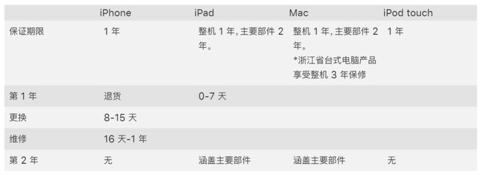 Apple基于中国三包规定的保内维修