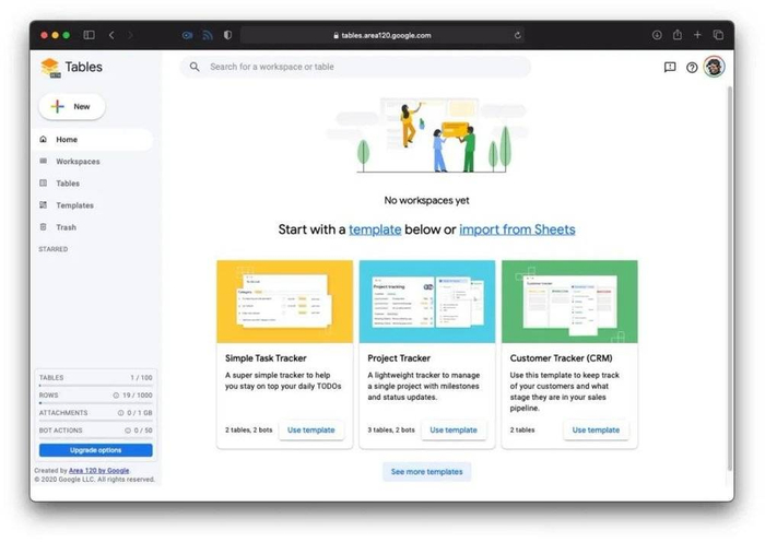 打开 Tables 的起始页面,从界面设计、视觉风格上看得出来,这是一个很标准的谷歌产品……