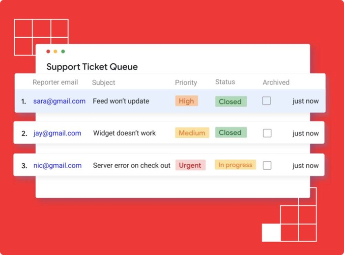 客服员工可以用Tables追踪客服请求,每一个请求都会标注ID、用户联系方式、主题、详细描述、优先级、请求状态等等。