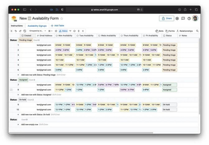 Tables由谷歌内部创业孵化器Area120(最初来自谷歌的20%时间项目)推出,是一个无代码的表格式自动化效率工具。