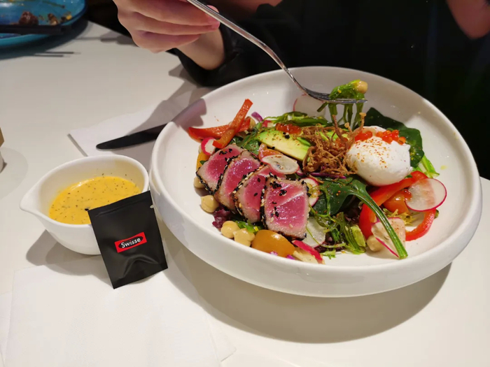 小食代了解到,在9月9日至9月30日将近一个月的时间内,消费者在新元素全国门店都能点到Swisse斯维诗“身体营养餐”。此外,餐厅内还同步推出外卖服务,消费者还可以通过第三方外卖平台下单订购一份搭配有Swisse旗下营养补充剂的餐品。