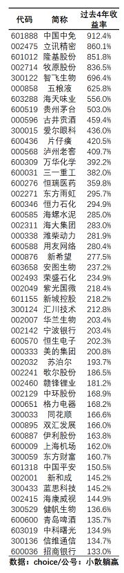 我统计了过去4年A股200亿市值以上股票的表现,选出其中表现最好的50家,如下图所示,是不是有一种「东方漂亮50既视感」?