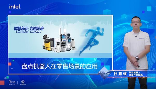 新松机器人高级产品经理杜鑫彧,重点介绍了RFID(射频识别技术)盘点机器人和视觉盘点机器人,前者盘点准确率高达99.2%,后者新增视觉盘点和积水异物检测功能,其图像处理技术完全基于英特尔OpenVINO™工具套件开发。