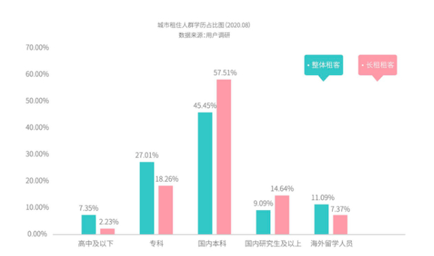 根据《2020中国青年租住生活蓝皮书》显示,当今住房市场的主体是年轻人,30岁以下占比超过55%,受教育程度较高,多为来到大城市读书毕业后留下的学生。这些年轻人,尤其是95后成长于“Z时代”大环境之下,对移动终端和网络的使用意愿更强,操作也更娴熟,租房程序多在网上完成。“线上业务”无疑是租赁市场的未来。