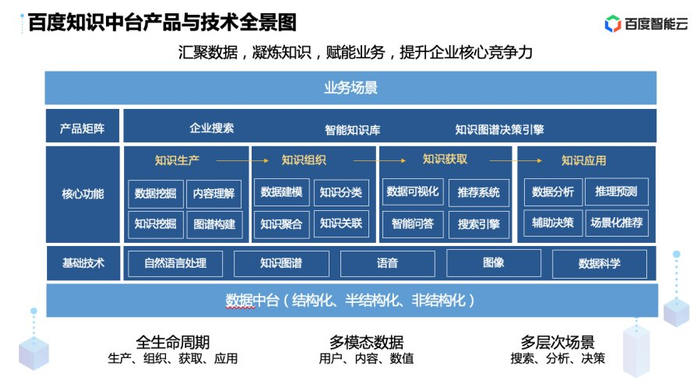 百度知识中台源于百度深厚的人工智能积累,是将百度搜索在ToC多年所积累的产品、技术以及运营的方法论集成到一起,面向行业整体输出的一套解决方案。面向能源行业,百度能源知识中台将电力行业数据中台中所蕴含的结构化、非结构化和半结构化的复杂且海量的数据引入知识中台中,进行体系化的知识构建,提炼知识的价值,打破数据孤岛,并对接业务直接提供信息满足,知识获取,知识辅助决策类应用,大幅降低维护成本,提升运行效能。