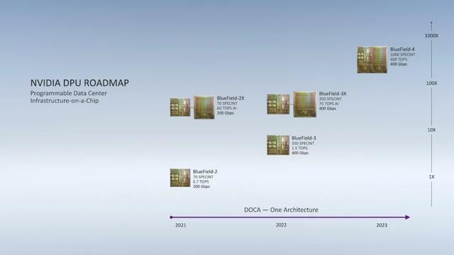 根据计划,英伟达将在2021年,推出两款DPU芯片:BlueField-2和BlueField-2X。