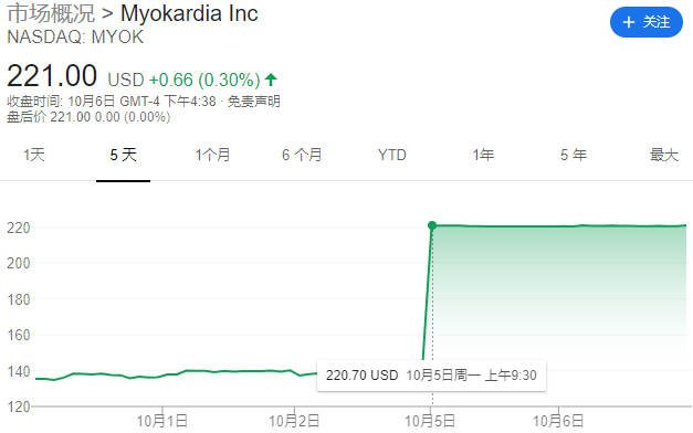 图表1. 并购消息对MyoKardia股价的影响
