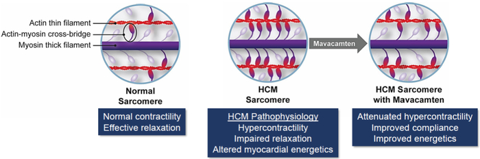 Mavacamten是一类新的直接肌球蛋白抑制剂(myosininhibitor)的首个候选药物,它针对过度收缩和松弛受损、心肌能量和顺应性,旨在治疗肥厚性心肌病(HCM,hypertrophic cardiomyopathy)。MyoKardia已经将mavacamten推进至多项后期临床研究,观察其治疗梗阻性和非梗阻性HCM的潜力。
