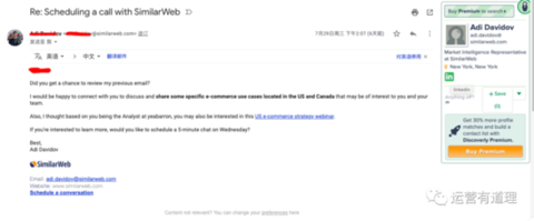 下图是我打开一封SimilarWeb的人发给我的邮件,右侧读取出了其