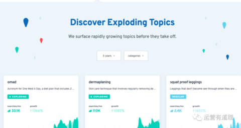 可以根据类目和时间,发现热门的关键词或者话题。适合用来写文章,也适合寻找潜在的利基市场。