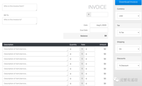 可以使用它创建漂亮的发票并将其发送给客户。服务是免费的,甚至不必登录即可创建发票。使用方便简单