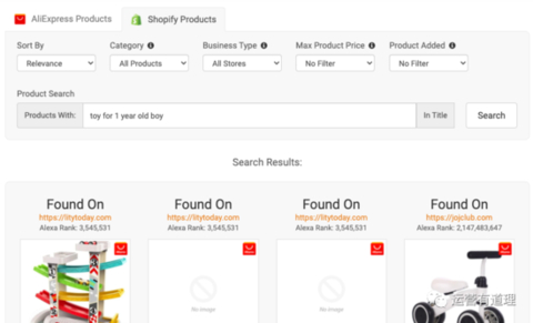 1)支持根据条件查询AliExpress和Shopify站产品,支持把某个产品一键复制到自己的Shopify店铺。