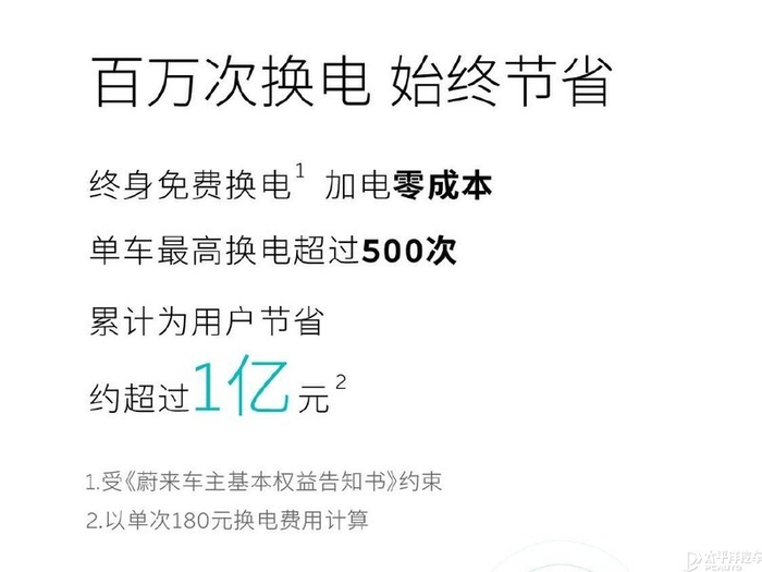 【太平洋汽车网行业频道】近日,蔚来官方宣称,蔚来将对10月12日0点后支付大定金的用户,调整换电权益,不再享受老车主的无限次免费换电权益,改为每月前6次换电仅收取电费,免收服务费;放弃专属桩权益的用户每月前6次换电免费。