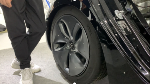蒋浩敏:轮胎总的来说没有什么特殊,但是轮毂方面应该是有改动的,为了迎合电池的设计,把重心都转移到了四个轮毂上,这样的话很利于转弯时的稳定。