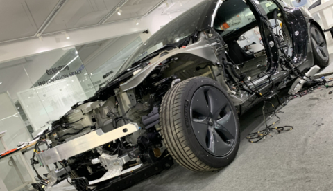其中印象最深的是电池的拆解。特斯拉的电池放在了车底,最开始我们认为先用举重机把车举起来,用托盘托举电池,再拆掉四周的紧固件就可以了。但后来发现完全不是这样,