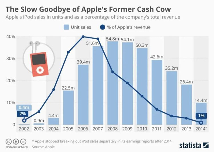iPod 退出历史舞台就像它登顶一样顺其自然,我们现在已经不需要一个单独的设备专门播放音乐,iPhone 足以满足绝大多数人聆听音乐的需求。通过 iPod 见证数字音乐的变革,苹果公司也从该过程里打下了音乐产业坚实的基础。