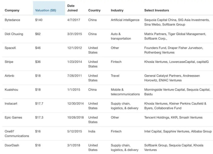 (资料来源:CBinsights实时独角兽名录, 2020/10/12)