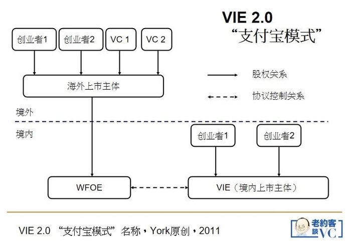 2,2011 开始VIE 2.0时代。“支付宝事件”是在“线上支付牌照不得有外资参股”的政策限制下,对VIE 架构的创新,也引领其他金融科技企业的仿效。