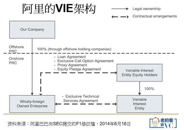 有关VIE架构的背景、缘由及风险,请参考公众号“老约客谈VC” 基础概念 4:“境外新经济项目的VIE架构”,2018/4/2。