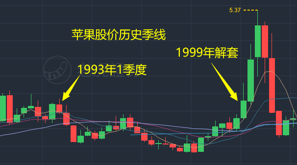 这小说暂时就看到这,后面的剧情我还没看,但我好奇去看了一眼苹果的历史股价,妈咧,从1993年开始苹果股价熊了6年,一直到1999年才涨回到1.8美元以上,而2020年最新的股价是370美元。