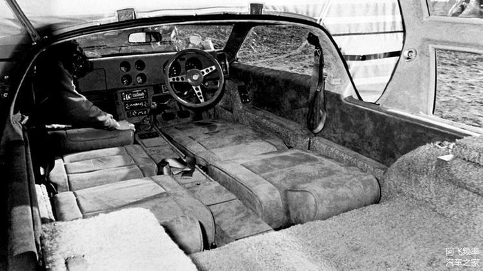 内饰是什么样子的,我可以开着它去度假吗?为什么不呢?那是一个自由爱情的年代,充满着迪斯科舞曲和全球石油危机的时代。不过我们不能忽视一个点,这辆车除了四张床外,还提供了很多家具,不过只能到了目的地才可以使用,平时是隐藏在车尾的专用储物空间中,其中包括了桌子和长椅。奇怪的是,车内并没有配备冰箱等便利设施。