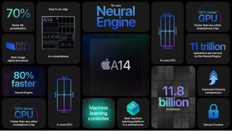 新款iPhone 12 Pro机型将采用苹果的A14 Bionic芯片--上个月首次在更新的iPad Air上推出--副总裁格雷格-乔斯维亚克此前曾表示,这是苹果“有史以来最强大的芯片”。新芯片是苹果首次使用5nm工艺(去年A13 Bionic使用7nm工艺)。苹果表示,新的6核CPU和4核GPU都是有史以来最快的,该公司称其性能比其他手机快50%。