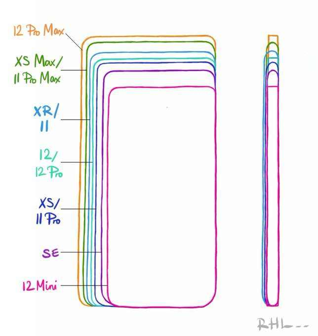2020 年苹果产品实际尺寸对比手绘图,大家拿走不谢。
