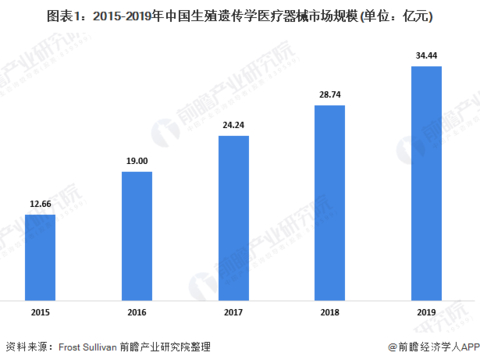 2019年,中国生殖遗传学医疗器械市场增长至34.44亿元