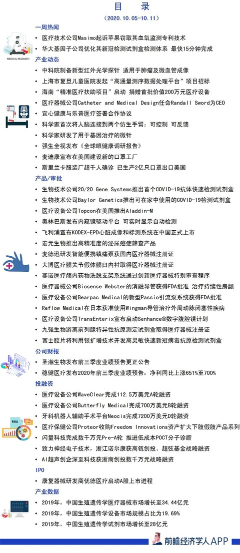 原标题:前瞻医疗器械产业全球周报第47期:苹果被起诉窃取血氧监测专利技术,华大推15分钟新冠快速检测盒 来源:前瞻经济学人