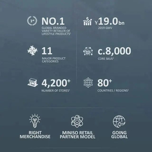其官方数据显示,截至2020年6月30日,名创优品拥有8000个核心SKU,合作超800个供应商和17个知名IP。已进驻包括美国、加拿大、俄罗斯、澳大利亚、德国在内的超80个国家和地区,开设超4200家门店,其中国内市场门店数量超2500家,海外市场超1680家。