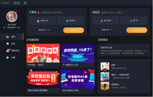顺网云电脑应用中,游戏实现免下载、免安装,玩家可以即点即玩,这样在节省硬盘空间的同时也节省了不少时间。另外,顺网云电脑的优势还在于云端有着高端的硬件配置,因此,云游戏则相当于对本地电脑进行了一次软升级。类似于16G内存以及RTX2070ti这种发烧级的配置在云游戏的加持下也不再遥不可及。