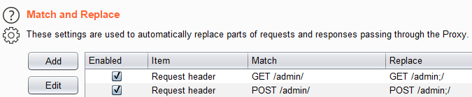 仅仅经过几次HTTP请求,我们就发现“GET /admin;/”允许攻击者访问管理控制台。我们通过设置一个Burp Suite规则,自动将HTTP请求中的“GET/POST /admin/"改为 "GET/POST /admin;/”,从而实现了自动绕过。