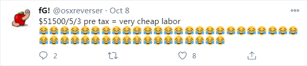 一位前苹果员工就在推特上吐槽到,“奖金就是最好的劳动力”。