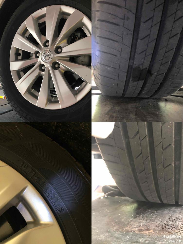 检测四轮轮毂及轮胎,出厂日期与车辆出厂日期基本符合并无更换刮蹭。