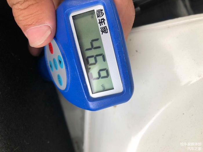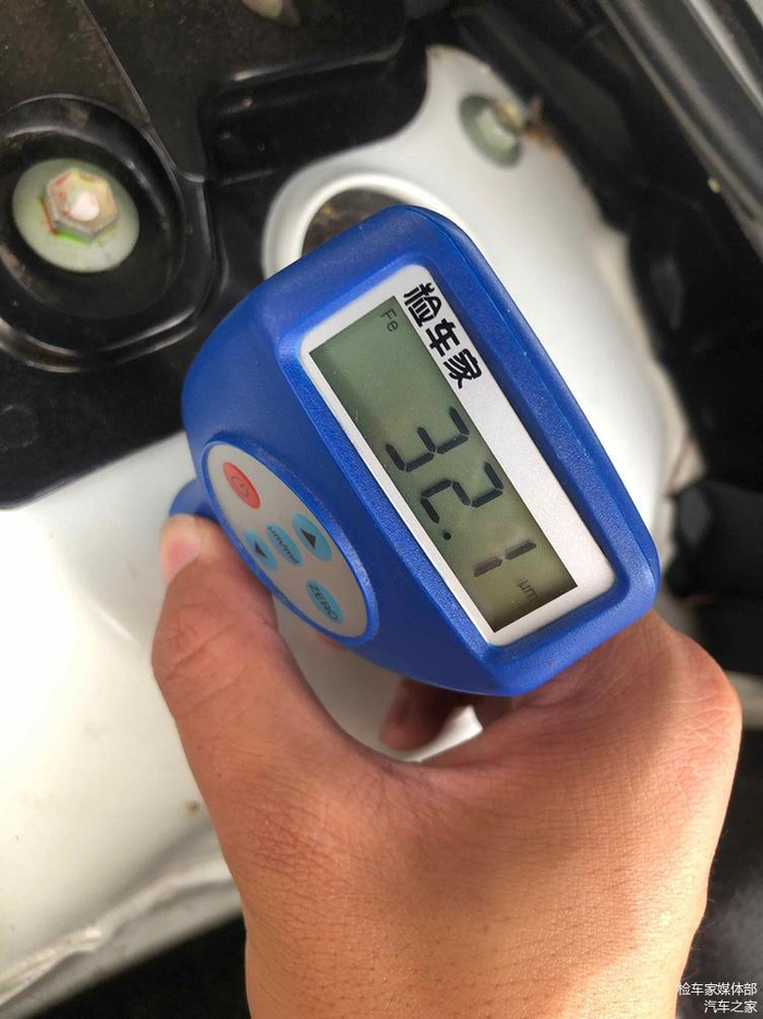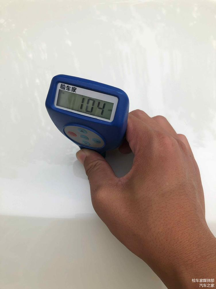 检测机盖漆面数值,无喷漆修复痕迹,抚上去的触感也是光滑细腻,没有砂手的感觉。