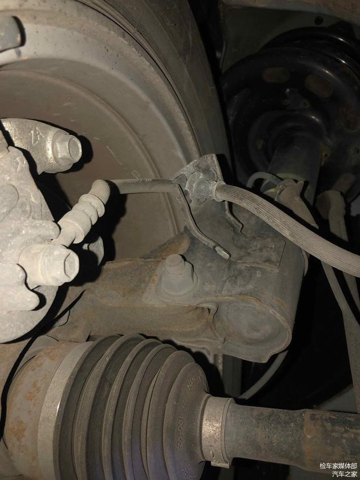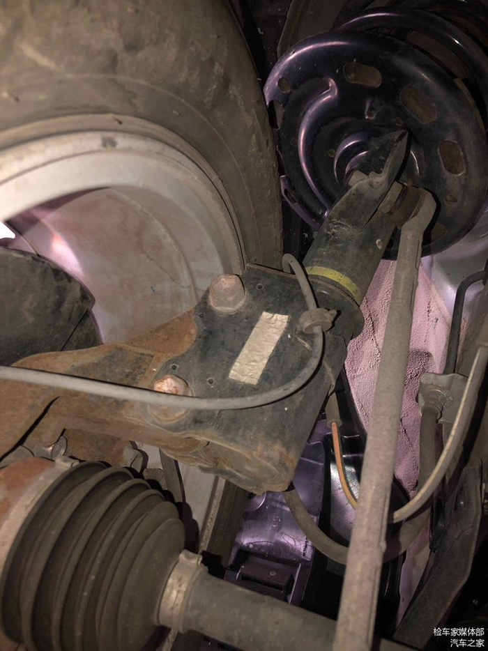 检测右侧悬挂系统,螺丝也均无拆卸更换痕迹,半轴胶套也无渗油老化迹象。