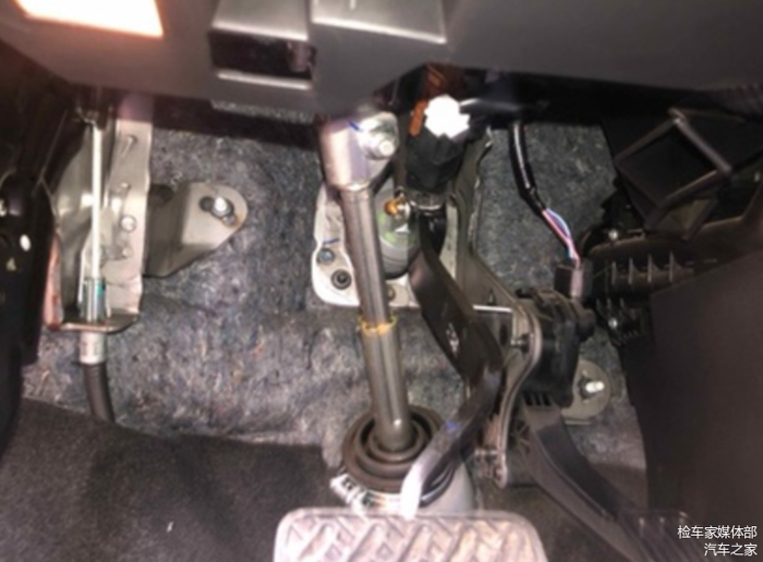 检测方向机管柱及离合器刹车踏板无生锈痕迹,磨损程度也不大,与车辆行驶里程基本符合。