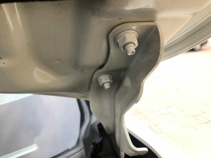 检测左前机盖固定螺丝,无拆卸和后期修复的痕迹。