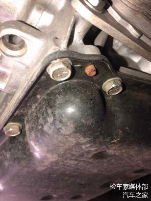 检测变速箱油底壳螺丝,无拆卸渗油痕迹。