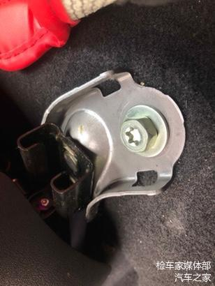 检测右侧大灯固定螺丝,无拆卸痕迹,可以排除大灯有过更换,到此可以排除车辆前部有过碰撞修复。