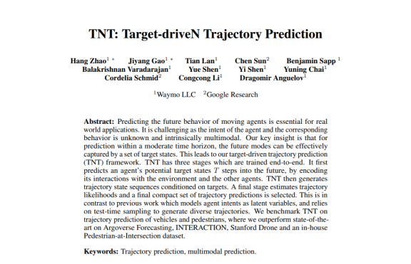 原标题:Waymo与谷歌提出颠覆性TNT模型,实现自动驾驶多轨迹行为预测