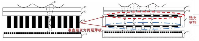 考虑到屏幕与玻璃盖板的厚度,光学式指纹技术在准直层的基础上,衍生出了小孔成像方案,将原先较厚的一块准直层拆分为两层薄的小孔板及中间的透光材料, 能够降低厚度与成本、增加透光量和识别率。