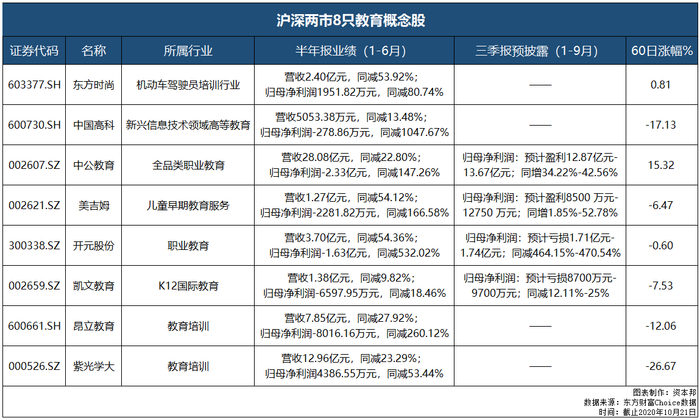 那,沪深两市教育概念股企业情况又如何呢?