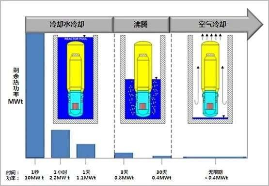 那三天之后呢?水池确实沸腾了,但此时的余热功率已经不到1兆瓦,这一大池子水,足够沸腾30天才会烧干,即使没有技术人员采取干预措施,30天后,“核充电宝”的余热功率已经不到0.4兆瓦,靠空气自然冷却,也能带走这些热量,已经不需要操心啦!