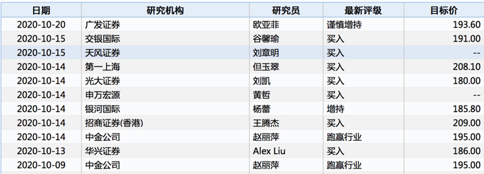 Wind收录的针对新东方美股的投资评级显示,10月出迄今,已有11份分析报告覆盖且均给出了正面评价。目标价为180美元至209美元不等,按照最新收盘价计算,分析机构认为新东方美股还有5%-22%的上涨空间。