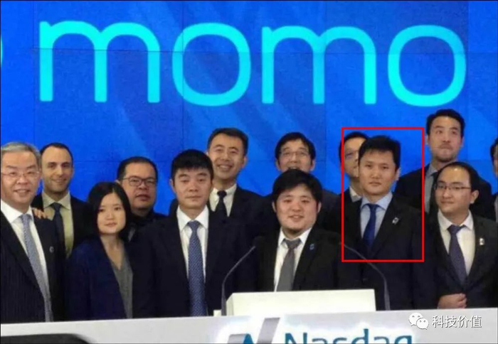 陌陌上市时,王力在唐岩身边重要位置