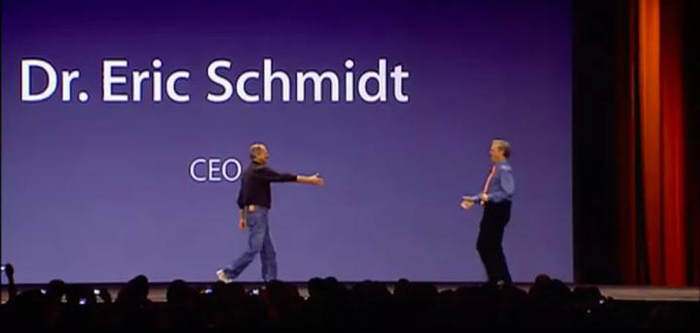 施密特当时开玩笑说:「我们可以把这两家公司合并起来,叫 AppleGoo。」他同时也是苹果公司的董事会成员。