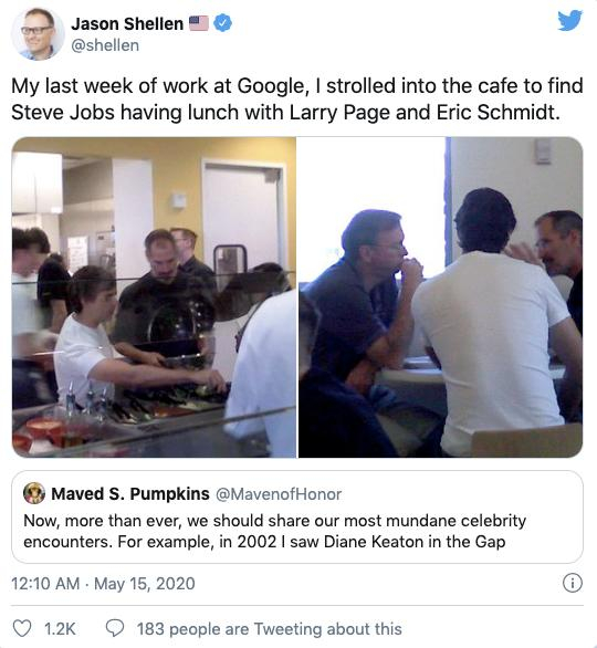 还有前员工爆料,「一进咖啡厅就碰见乔布斯在和Larry施密特二人共进午餐。」