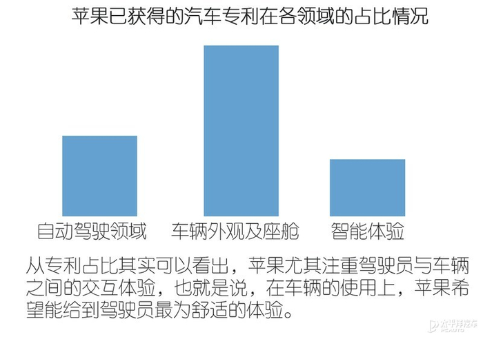 密密麻麻的一堆,相信您也没耐心完全细看,所以我在这里也帮您总结了一下——在苹果已获得的汽车专利中,是涵盖了自动驾驶、电动汽车、车内软件、车身、安全保障等各个领域。而其中,很大一部分是涉及到了驾驶员与车辆的交互。说白了就是,苹果现在还没有一整个车辆的雏形,但很多互联网思维的想法却是比较超前了。