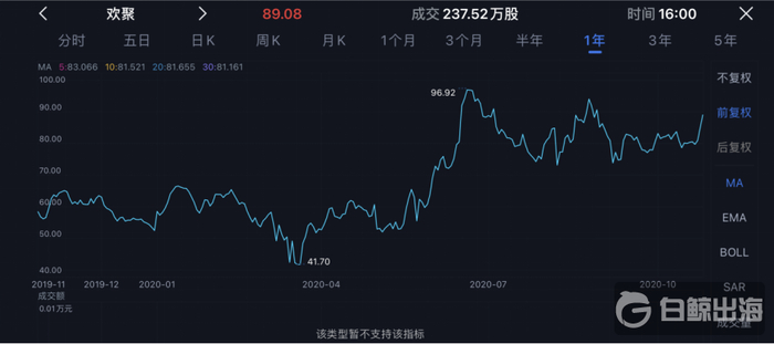 欢聚近一年股票价格|数据来源:腾讯自选股